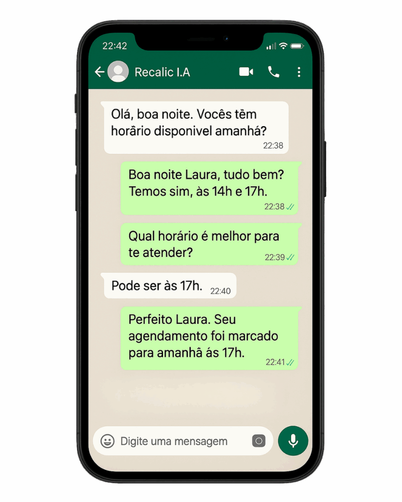 Eles não apenas respondem perguntas, mas conversam de verdade, entendem o contexto e guiam o cliente até o agendamento, como se fosse um membro da sua equipe.